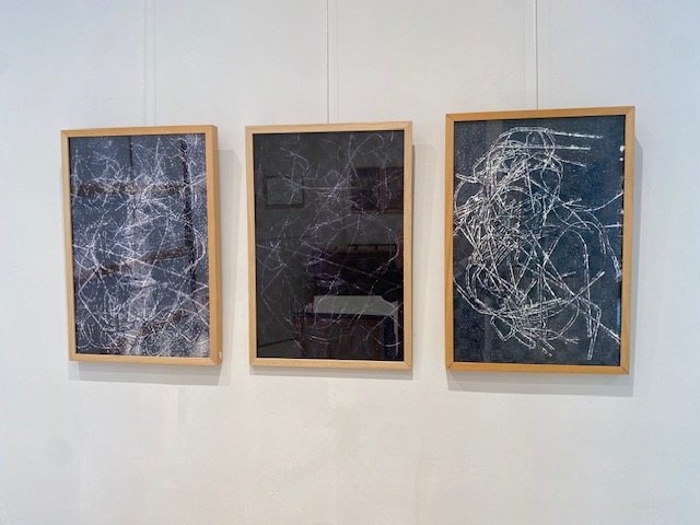 Exposition de Dominique Descamps. Graveuse et plasticienne. Elle propose ici des linogravures et livres d’artistes.
