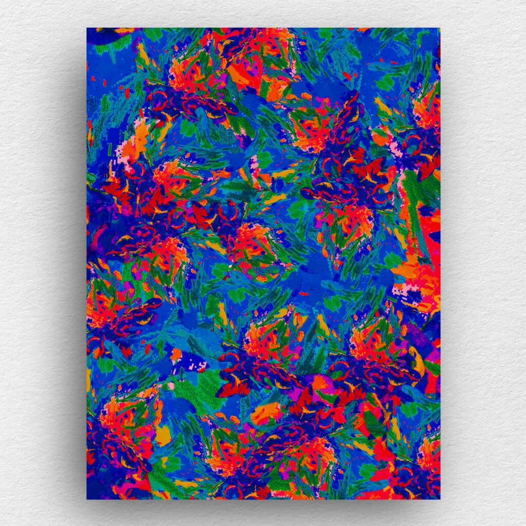En 2025, elle explore le thème des fleurs imaginaires, celles qui poussent dans nos rêves. Son univers est doux tout en étant nourri de couleurs criardes.